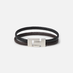 Bold Clasp Leather Bracelet (Silver)