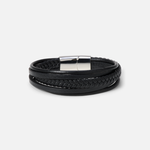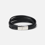 Triple Ring Leather Bracelet (Silver)